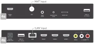 If you’d prefer to connect an Ethernet cable to connect to the internet, simply insert the cable (not supplied) to the ‘LAN’ input port at the back of the TV (4b), and ensure that it is correctly connected to the internet.