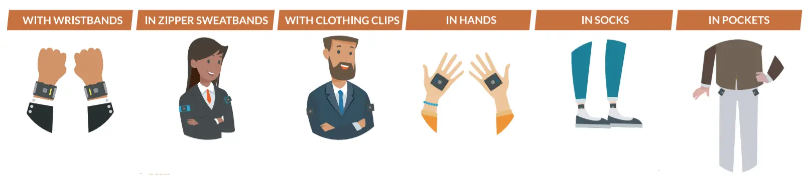 TouchPoints are worn as a synchronized pair with one on the right side and one on the left side of the body. Skin contact is not necessary as long as the vibrations are felt.