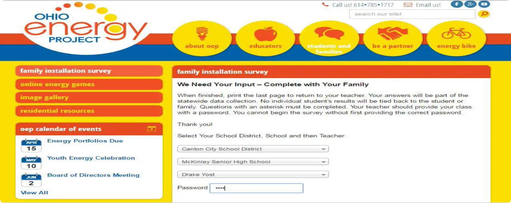 - Have students enter installation survey data (at www.ohioenergy.org) using the school’s computer lab, or mail paper copies of installation survey to: