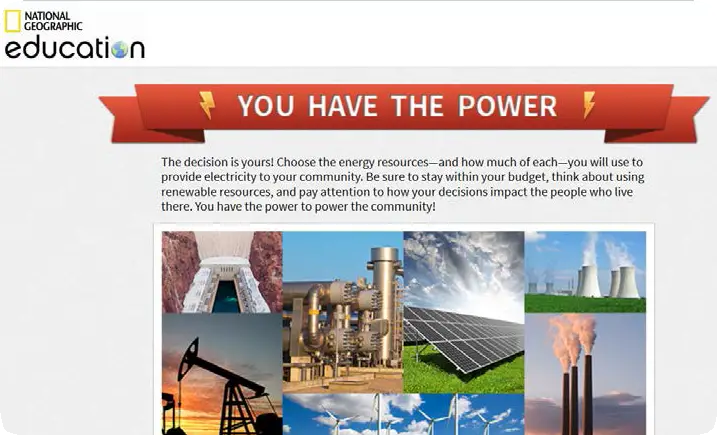 The decision is yours! Choose the energy resources—and how much of each—you will use to provide electricity to your community.