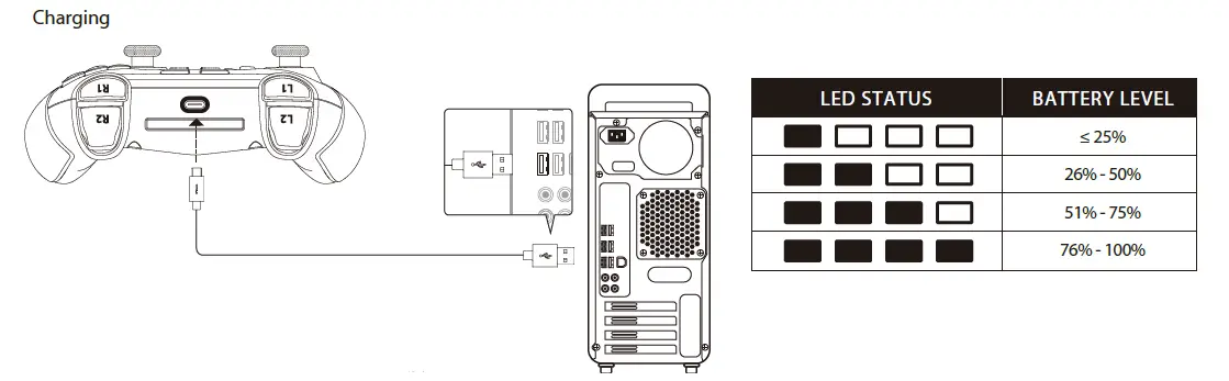 It is recommended to fully charge the controller before first use.