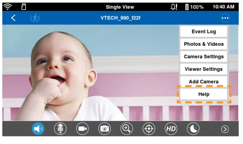 - After connecting the parent unit to your Wi-Fi network, tap to select the VM991 camera.