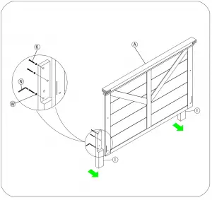 – Attach the Allen bolt 1″(25 mm)(K) and Nut 3/4″(20 mm)(L) on the lowest hole of Sideboard.