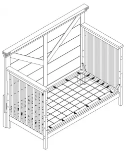 - GUARDRAIL (SOLD SEPARATELY) MUST BE USED WHEN CRIB USED AS A TODDLER BED TO AVOID THE FORMATION OF A GAP BETWEEN THE MATTRESS AND THE BED THAT COULD CAUSE AN ENTRAPMENT.