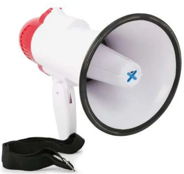 - If not in use for a long period of time, remove the batteries and store them separately to prevent leaking batteries and damaging the circuits inside the megaphone.