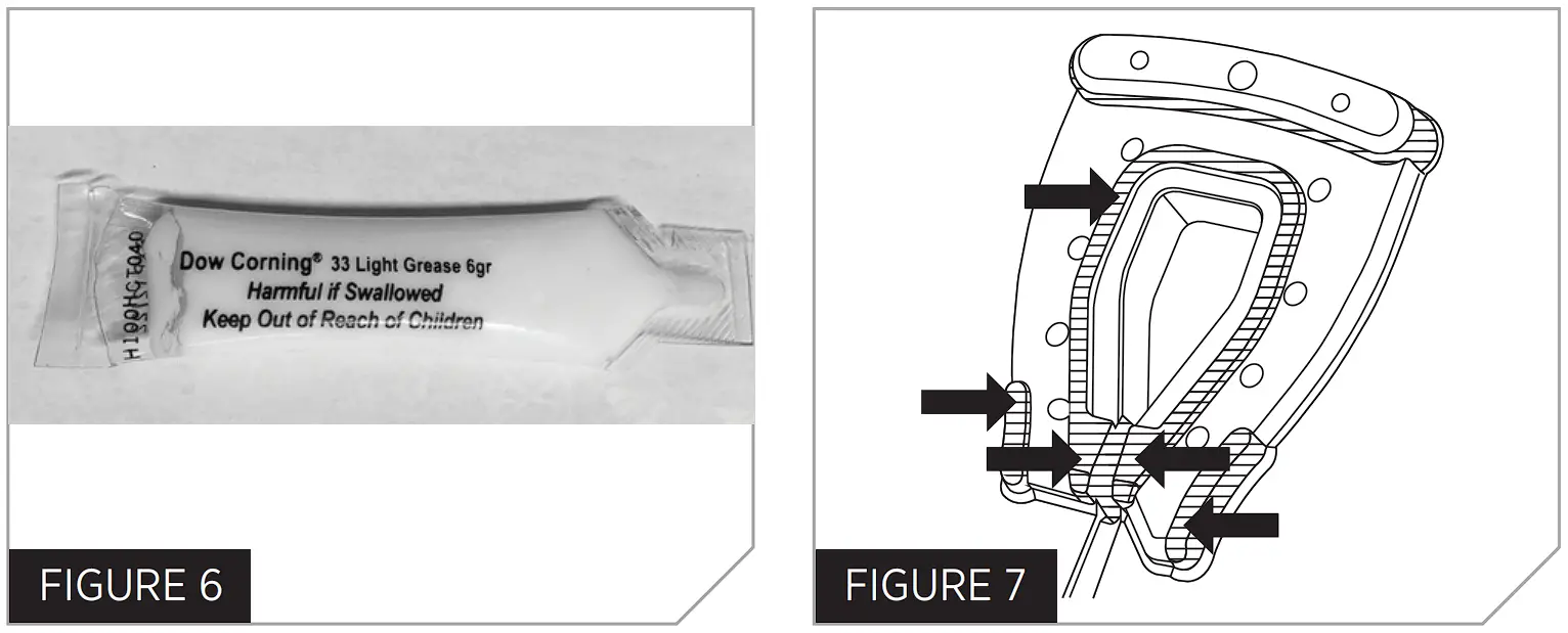c. Squeeze the package or tube gently and apply a small amount of lubricant to the W-SEAL as indicated in the image. Only apply to the indicated areas.