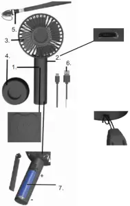 - A stand (4) has been added to the set, into which you can insert the fan to work in a stable position.