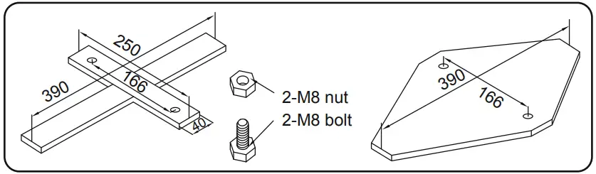 EN60335-2-41 TEST standard requires the filter pump to be vertically fixed on the ground or a base made of wood or concrete before use. There should be two holes 9 mm in diameter on the base, the space between which should be 166 mm. Put filter pump on the base and attach them together by fastening the bolts and nuts. All the base parts should weigh at least over 18 kg to prevent the pump from accidentally falling.