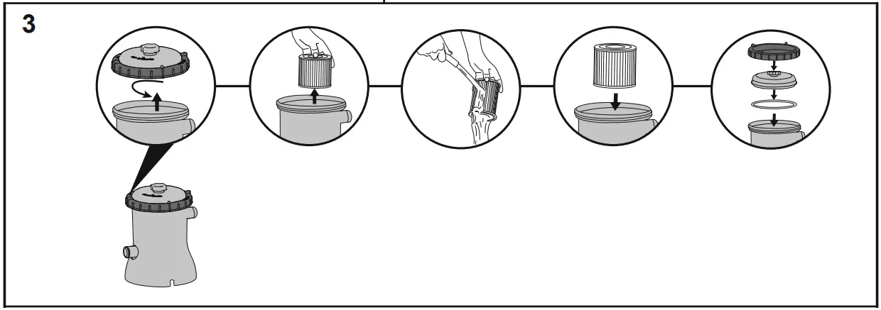 inside this manual. Drawings are for illustration purposes only. May not reflect actual product. Not to scale. - To optimize the Filter Pump performance and for sanitary reasons, we suggest replacing the filter cartridge with a new one every two weeks.