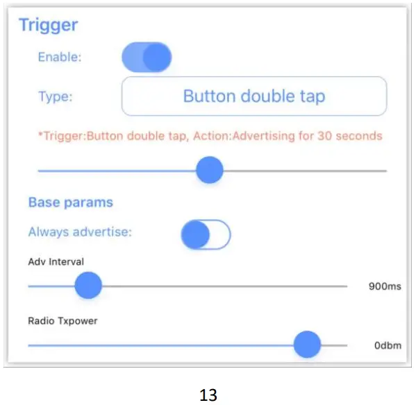 The trigger function will be activated and configured ONLY when the beacon device has a push button or loaded the sensor such accelerometer, temperature, light and others.