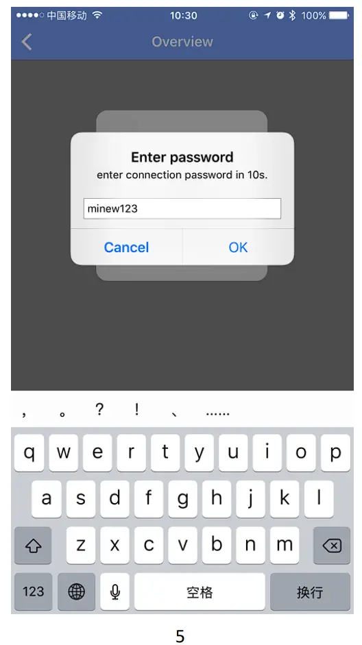 - Click the Beacon when it’s connectable, and then input the password as image 5. If it is correct, the Beacon enters into configuration mode, see image 6;