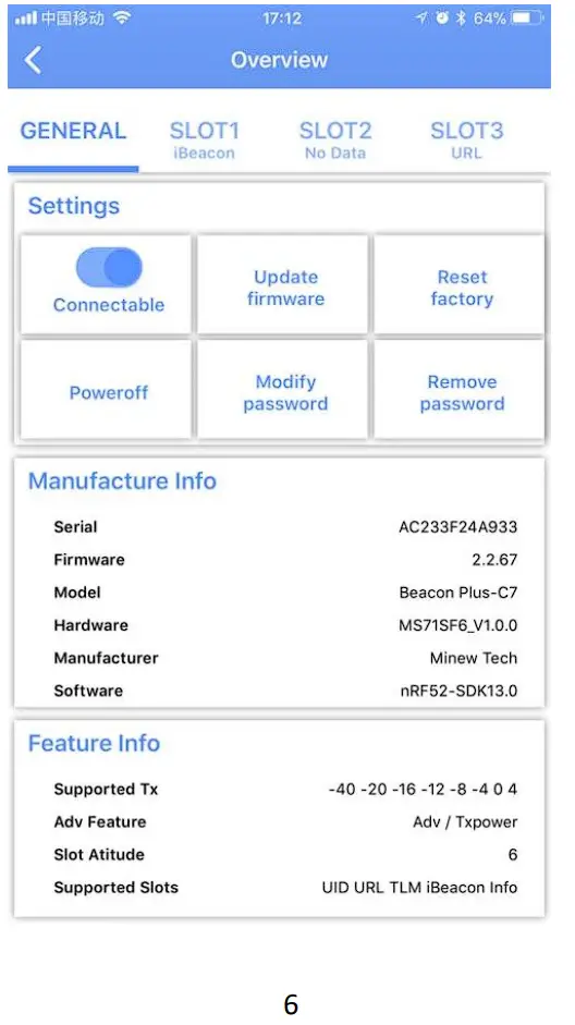 SLOT: Each Beacon has 6 configurable SLOTs; it is from SLOT1 to SLOT6.