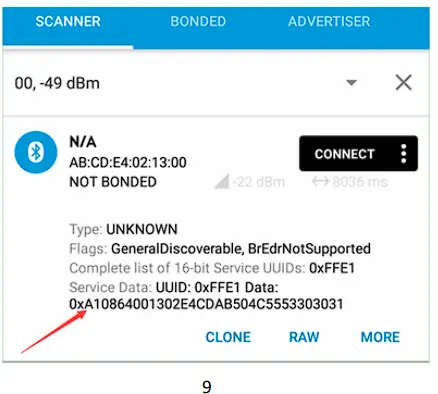 | 9 | 2 | UUID data | 0xE1FF | (little-endian) 0xFFE1 |