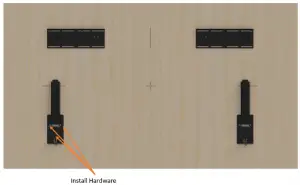 - Level and install the main support screws. At minimum, two pieces of mounting hardware must be used on a single hanging mount component.