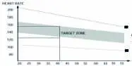 This is the stage where you put the effort in. After regular use, the muscles in your legs will become more flexible. Work to your but it is very important to maintain a steady tempo throughout. The rate of work should be sufficient to raise your heart beat into the target zone shown on the graph below.
