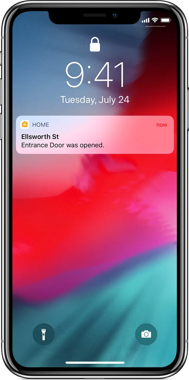 You can set up notifications for certain HomeKit accessories,* like locks and sensors, to alert you when an accessory detects something. For example, if you have a sensor on a door, you can get a notification when it opens.