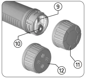c. The o-ring inside the battery compartment cover is placed snugly and the cover is secured tightly. - The Pulse Dive comes with 2 battery compartment covers. While using the device in dive mode, use the battery compartment cover that comes attached to the device and while using the device on land, use the one that is designed for land use to obtain a louder volume. To prevent the filter, which is used on the cover for land use, from any damage, do not insert any sharp objects into the holes for cleaning or any other purposes.