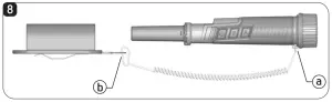 In order to carry the PulseDive on your waist and not to lose it, we recommend you to use the belt holster and the security lanyard as shown in the below picture. - Attach one end (a) of the security lanyard to the hole located at the back of the control unit and the other end with the snap hook (b) to the belt holster loop.