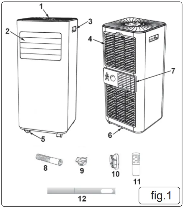 NOTE: The horizontal air flow direction is controlled by adjusting the air outlet louvres (fig.1 #2).