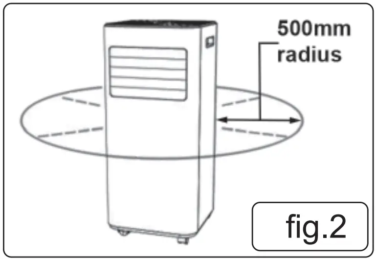 - Ensure that there is a clear area of at least 500mm (20 inches) around the appliance (fi g.2) to allow for adequate air circulation.