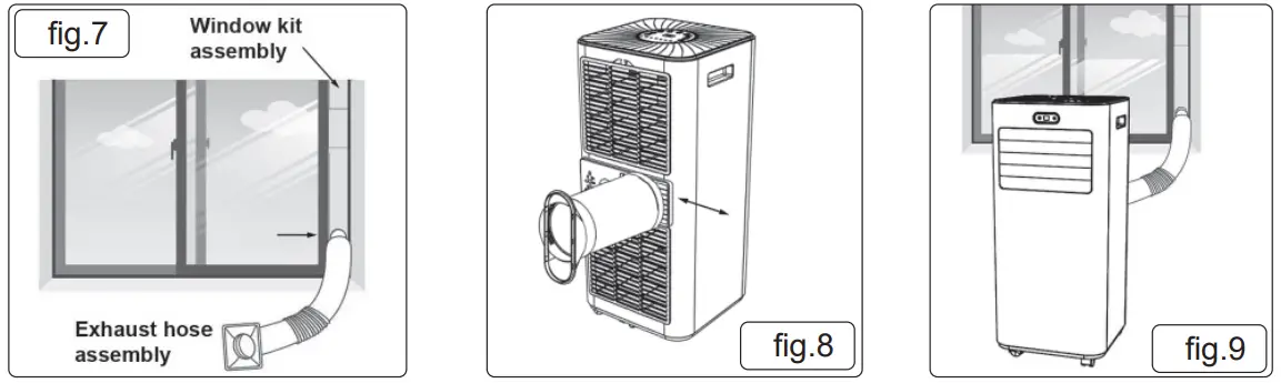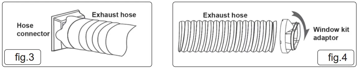 - Screw fi t the window kit adapter to the other end of the exhaust hose (fi g.4).