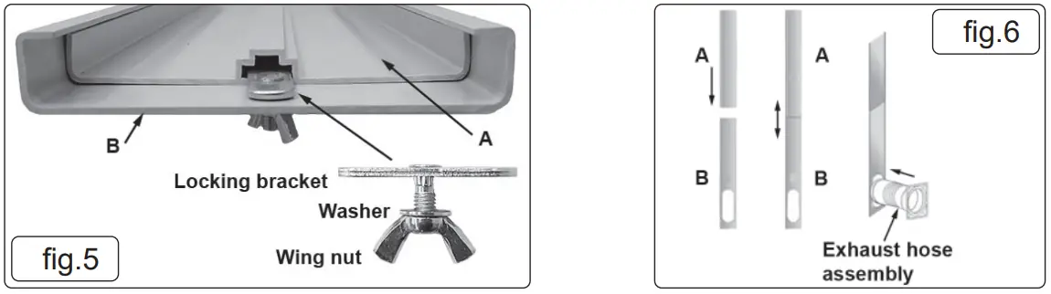 5.3.4. Extend the adjustable window kit to suit the size of the window and tighten the wing nut (fi g.5) to lock.