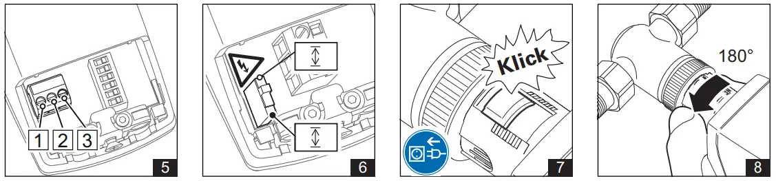 ![]() | NOTE The actuation direction can be changed by switching the supply lines to terminals 2 and 3 on the actuator. |