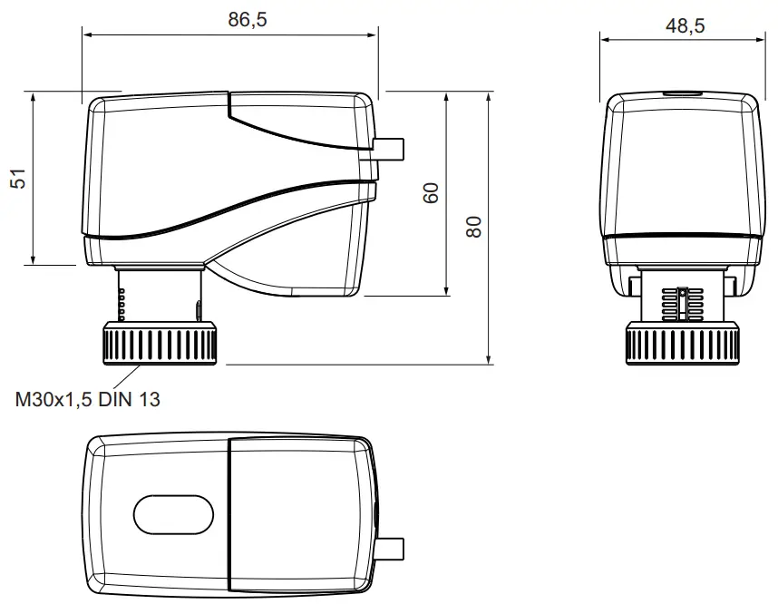 | Manual adjustment | Only when disconnected from the power supply Socket for hexagon key on the actuator cover, Key socket 4 mm |