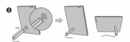 Plug the DC power cord into the Cozyla AIbum and insert the stand into the frame.