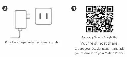 After the frame is installed, use your mobile phone to search for and download the My Cozyla App from Google Play Store or Apple App Store to begin the setup process. To learn more, go to https://cozyla.com/pages/support.