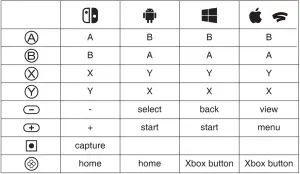 - For Android, Steam, Stadia, if connect as Switch Pro Controller, please refer to Switch profile.
