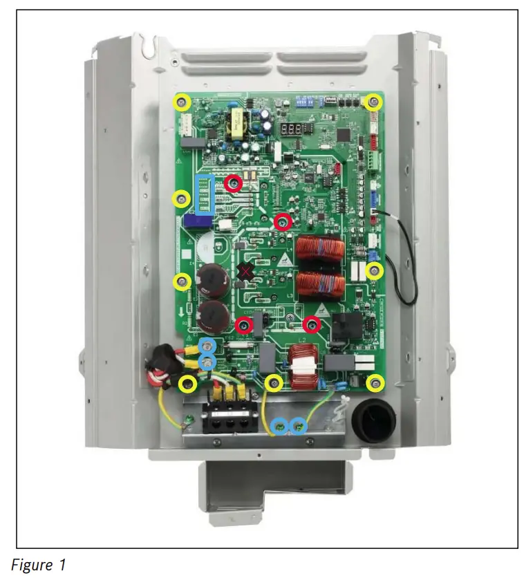 - Using the fourth screw in Table 1, fasten screw into the “X” position (refer to Figure 1) to separate control board from heat sink and take off control board.