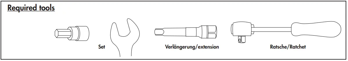 | We recommend having the installation carried out in a professional workshop. During installation, tighten all accessible screws loosely at first to ensure tension-free installation. When tightening the screws, observe the tightening torques. |