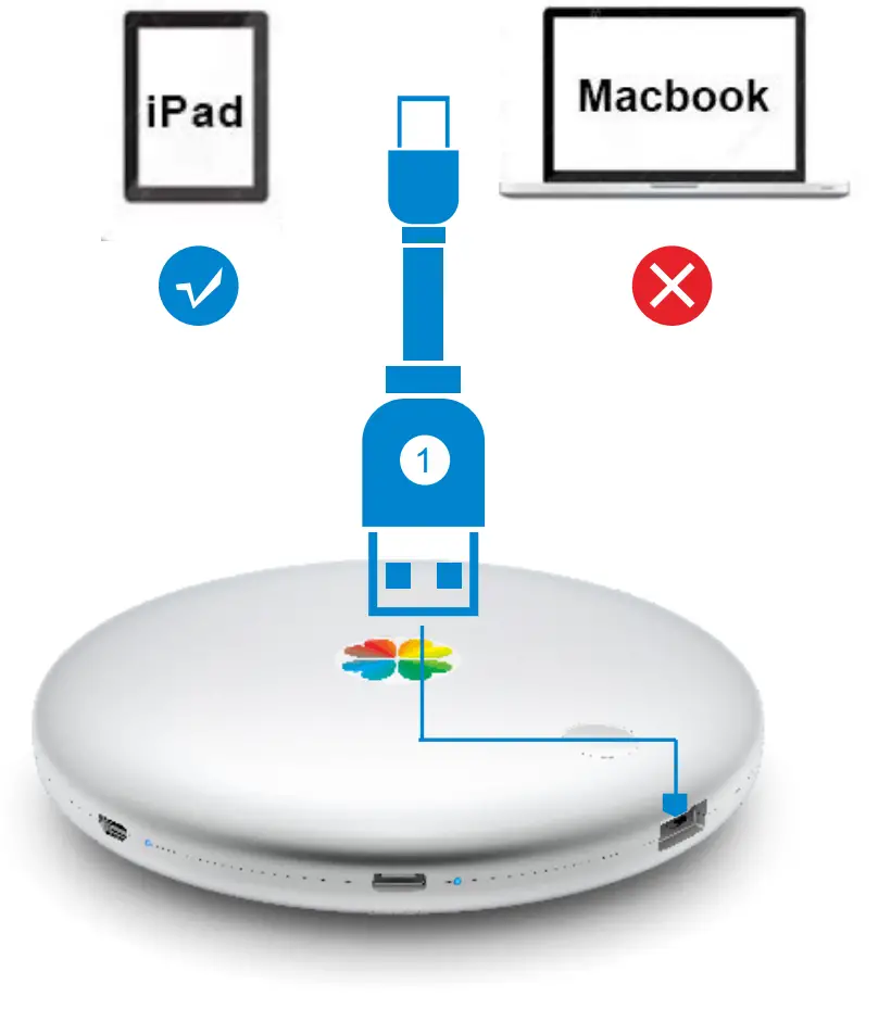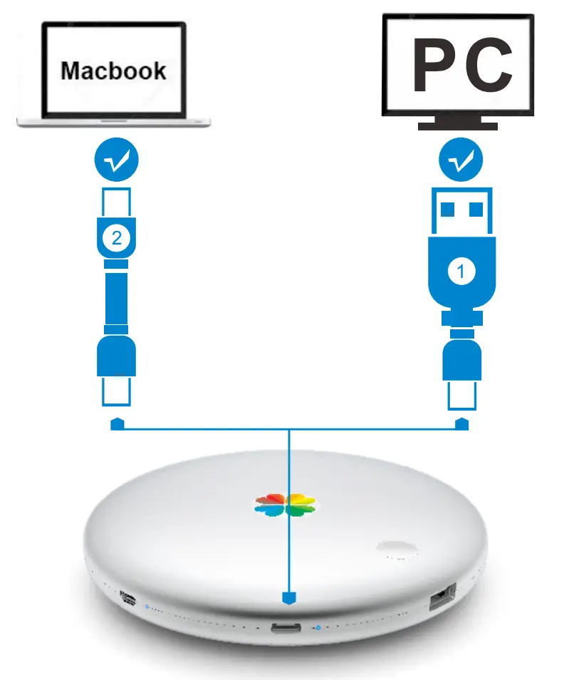 ❶ USB-Port (Marked as “Phone”) | ❷ Typ-C-Port (Marked as” Mac/PC”) | ||