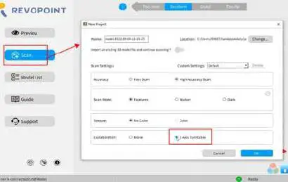 Note: For Windows, Revo Scan V 4.1.0 and above support the Dual-axis Turntable. For macOS, the Revo Scan V 4.1.0 (Estimated release September 13th) and above support the Dual-axis Turntable.