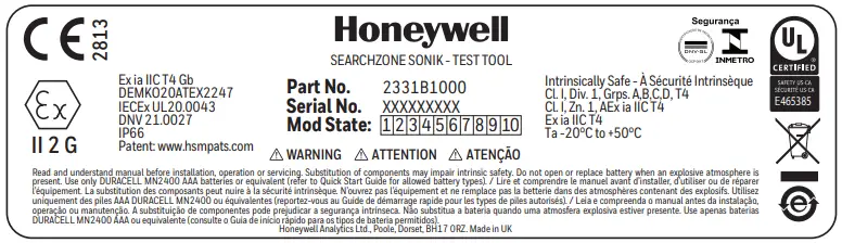 Honeywell Searchzone Sonik Hand Held Test Tool