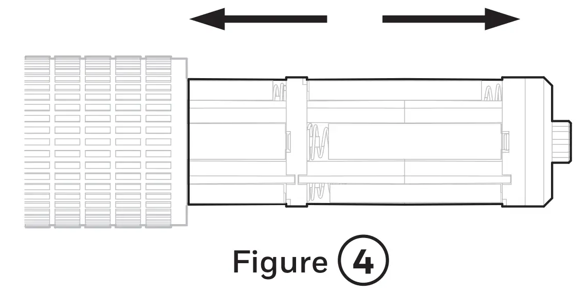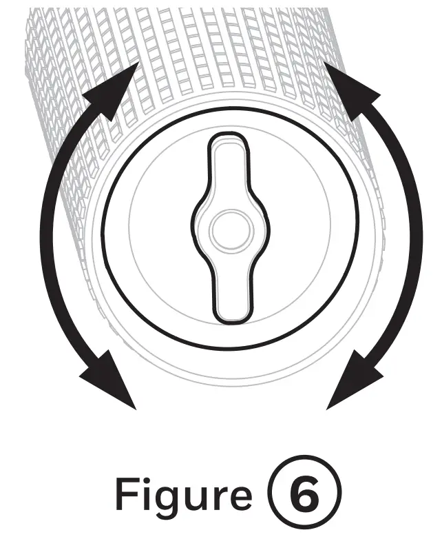 - Gently rotate the battery pack clockwise/anticlockwise until it locates in the guide grooves and slide it fully into position. Incorrect position of the battery pack will not allow the end cap to be mounted back (Figure ⑥).