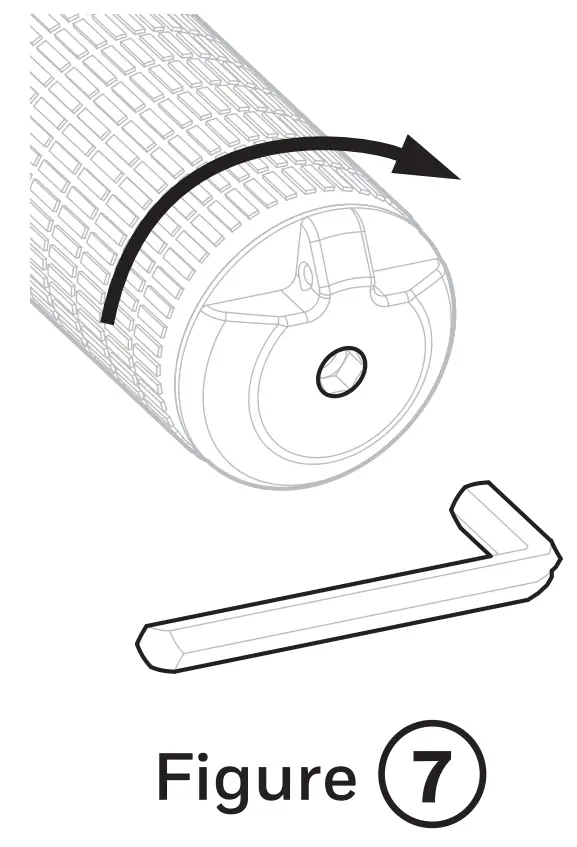 - Replace the end cap and rotate clockwise. Use a hexagon socket key size 6 mm and tighten gently (Figure ⑦).