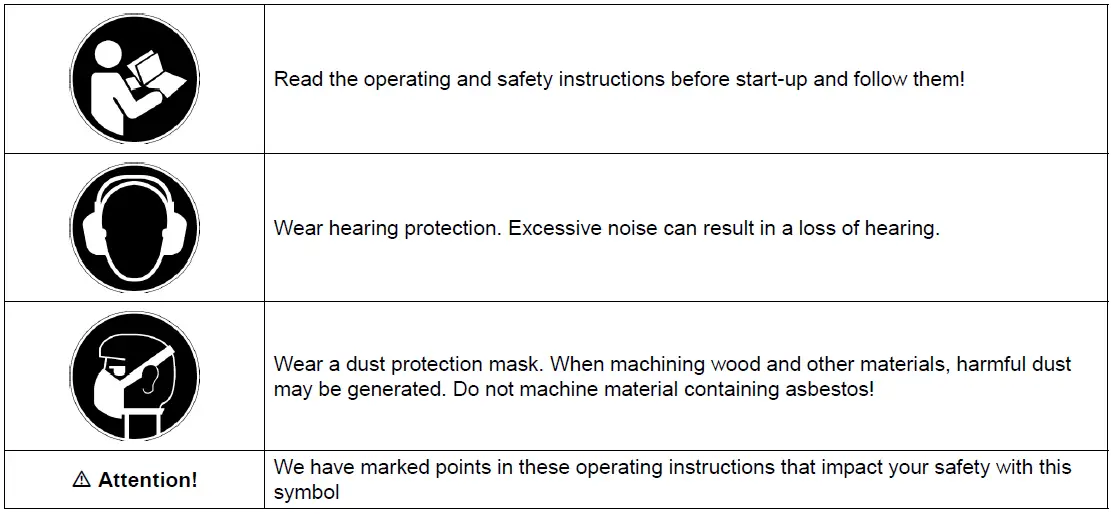 Symbols are used in this manual to draw your attention to potential hazards. The safety symbols and the accompanying explanations must be fully understood. The warnings themselves will not rectify a hazard and cannot replace proper accident prevention measures.
