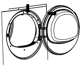 - That the appliance must not be instated behind a lockable door a sting door or door with a hinge on the opposite side to that of the tumble dryer, in such a way that a VI opening el the tumble dryer door is restricted.