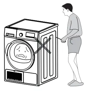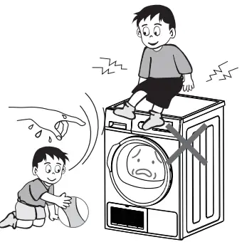 - Do not dere onto the Oyer or rest heavy °bats heating devices or items with water or liquid leakage on the dryer, lest deformation of the face panel and the plastic component occur.