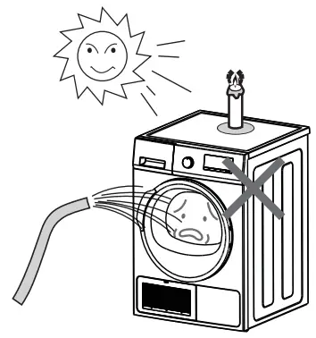 IMPORTANT: The hot air emitted by the tumble dryer can reach a temperature of up to 60°C.