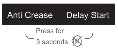 After turning on the appliance. the buzzer is on if you do no operation. The buzzer can be turned on or turned off during the process. By pressing ‘Anti-crease” and the “Delay start” button at the same time, the buzzer will be turned on and the corresponding pilot light comes on. when the buzzer is on, the signal will sound in the following case:![]()