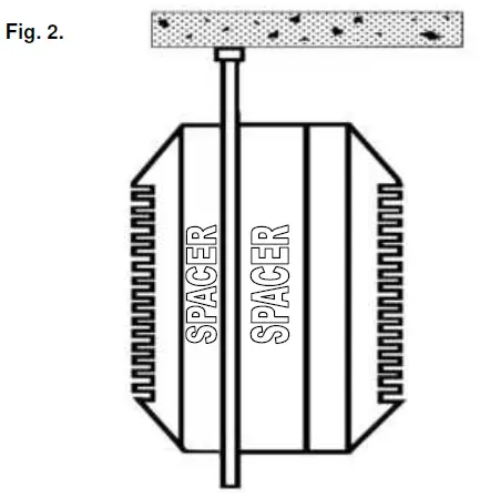 - From the outside, place on the remaining spacer, with the locating pips facing outwards. For double-glazing and materials up to 40mm thick, one or more spacers may be discarded. (Fig. 2.)