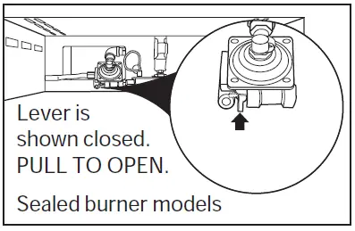 Lever is shown closed. PULL TO OPEN. | ||