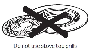 | Cookware not suited for broiling. | Use a pan specifically designed for broiling. | |
