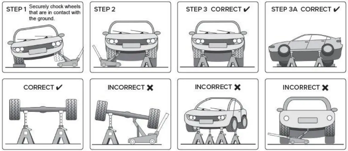 ✓ FOLLOW STEPS 1, 2 AND 3 TO CORRECTLY PLACE VEHICLE/LOAD ONTO AXLE STANDS.