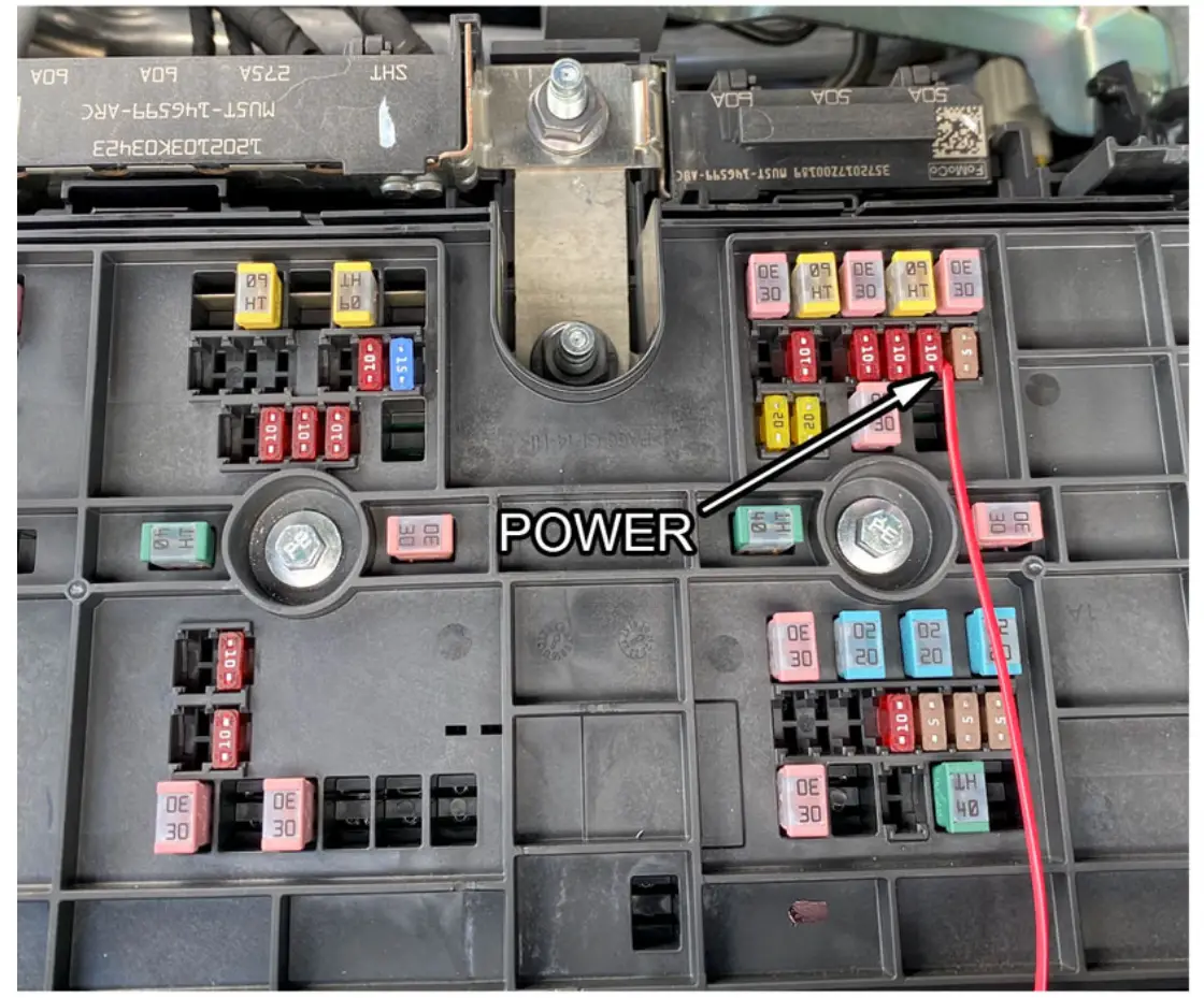 Ground the black cables to the fender ground post or battery post. Connect red wires to desired power source. For example: Parking Lights, Aux Switch, or ignition switched fuse in the fuse box by using an “add-a-circuit”