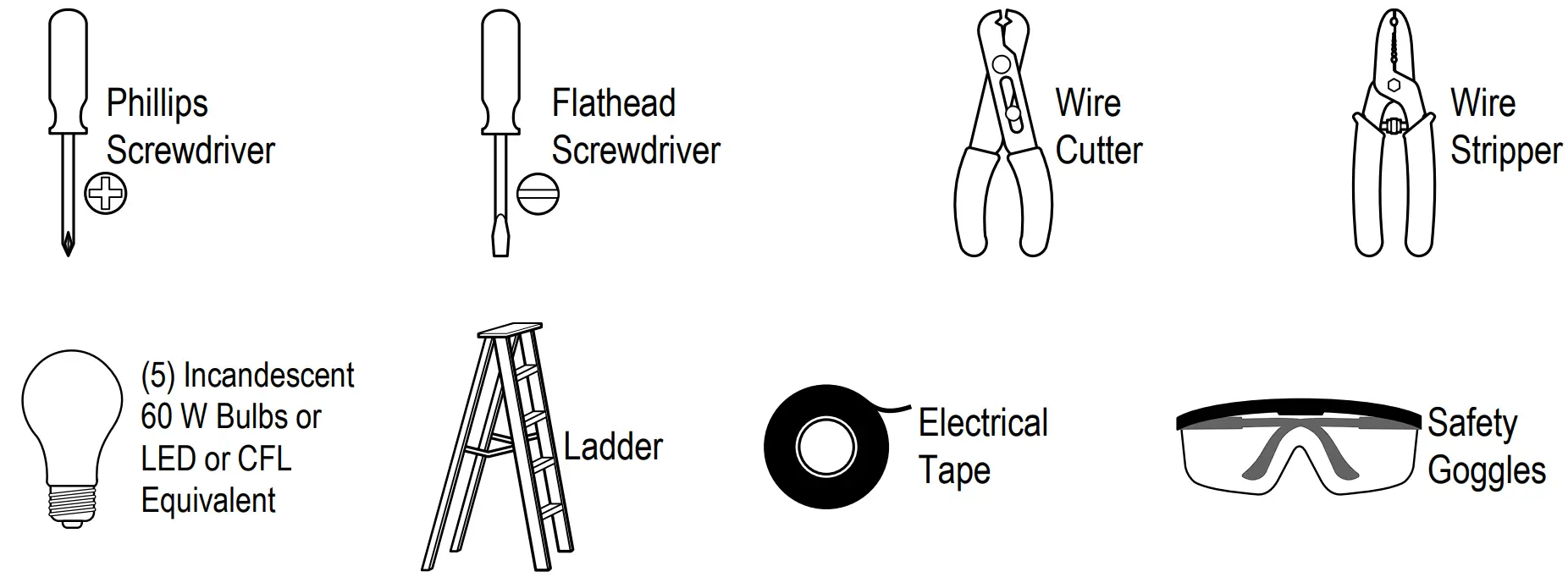 - Before starting installation of this fixture or removal of a previous fixture, disconnect the power by turning off the circuit breaker or by removing the fuse at the fuse box.