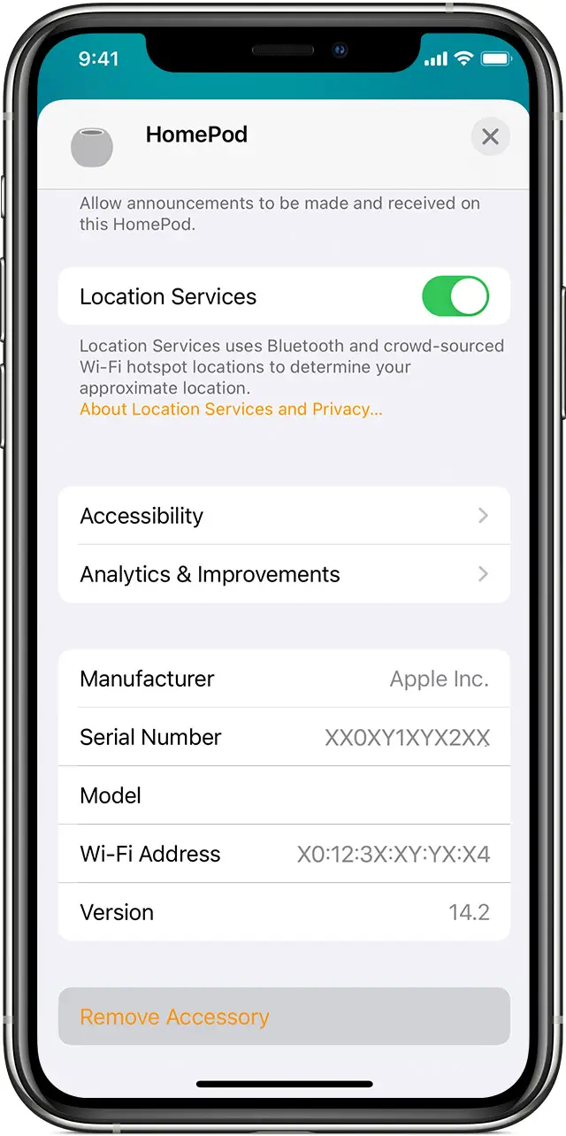- On iPhone, iPad, or iPod touch, press and hold HomePod. On Mac, double-click HomePod. Then scroll to the bottom and tap or click Remove Accessory.
